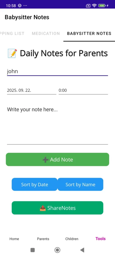 With this app, you can keep notes about kids’ daily routines, health, and allergies — all in one safe place.