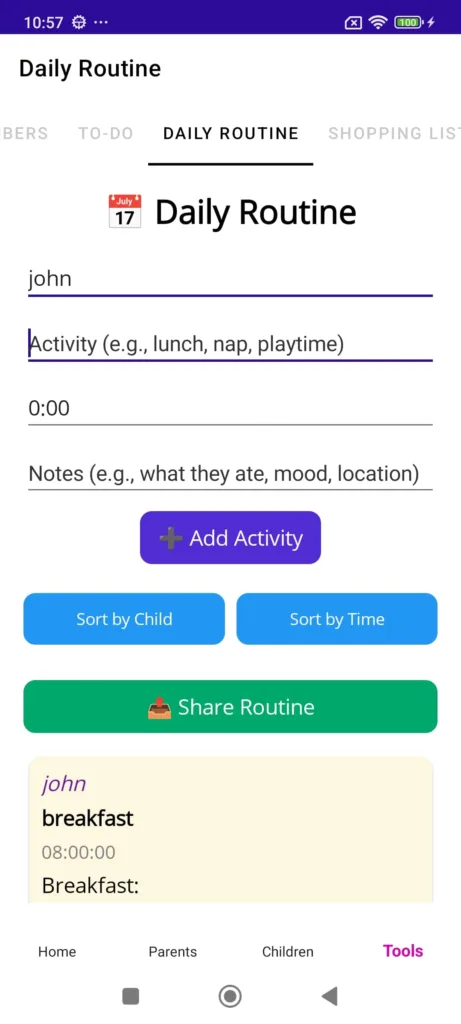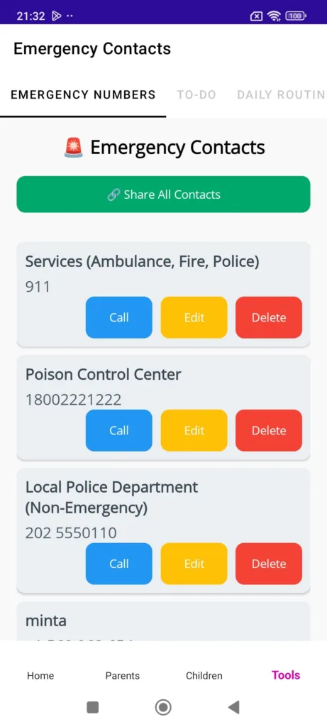 🔗 Share Info Easily – Send child details, routines, or safety info to babysitters or family members.