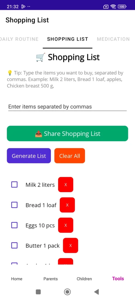 🛒 To-Do & Shopping Lists – Make lists for groceries or babysitting tasks.